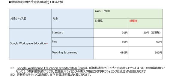この度、Google社からGoogle Workspaceの基本サービス(Educationプラン)の価格改定の発表がございました。