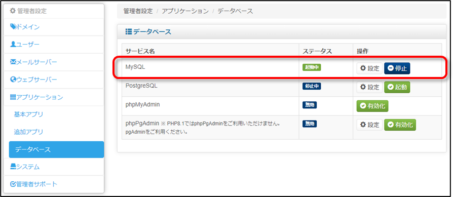 4.3.3 MySQLの利用開始~ 4.3.4 MySQLの停止|管理者マニュアル