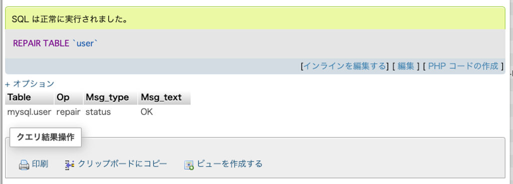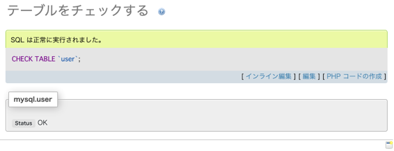 〇MySQLテーブル修復手順